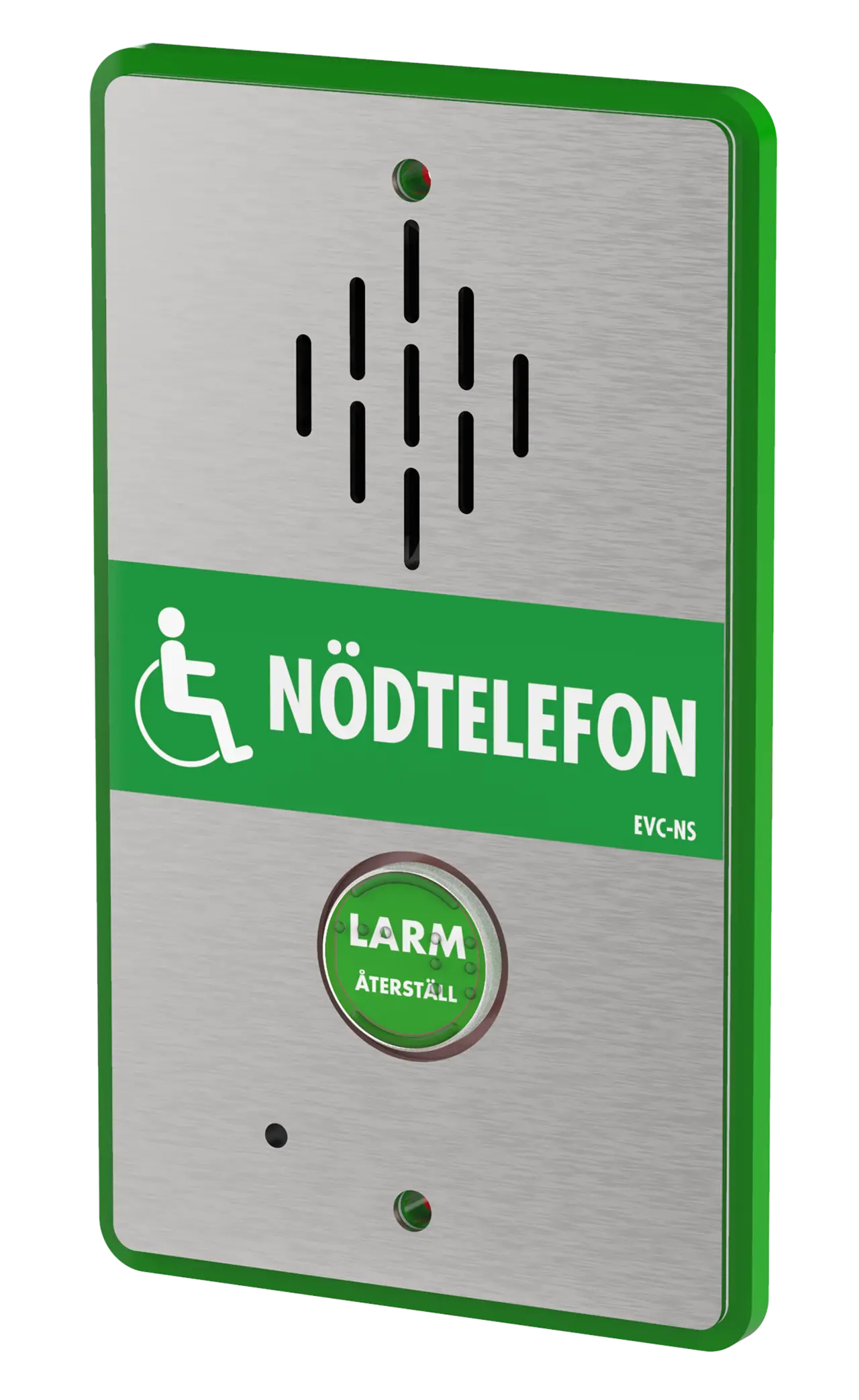 EVC-NS är en nödstation för talad 2-vägskommunikation för personer som befinner sig i nöd på säker utrymningsplats. Kommunikation sker med centralenhet placerad vid räddningstjänstens primära angreppsväg. Samtalet startas och avslutas med ett knapptryck. Knappen blinkar grönt. Efter tryck är enheten "handsfree". Samtalskvaliten är hög och tydlig full duplex. Enligt boverkets regelverk BBR 2012 5:248 ska enheten placeras med centrum 0,8m från golvet för full tillgänglighet. Infällnadsdosa EVC-KB-I E6303106 ingår.