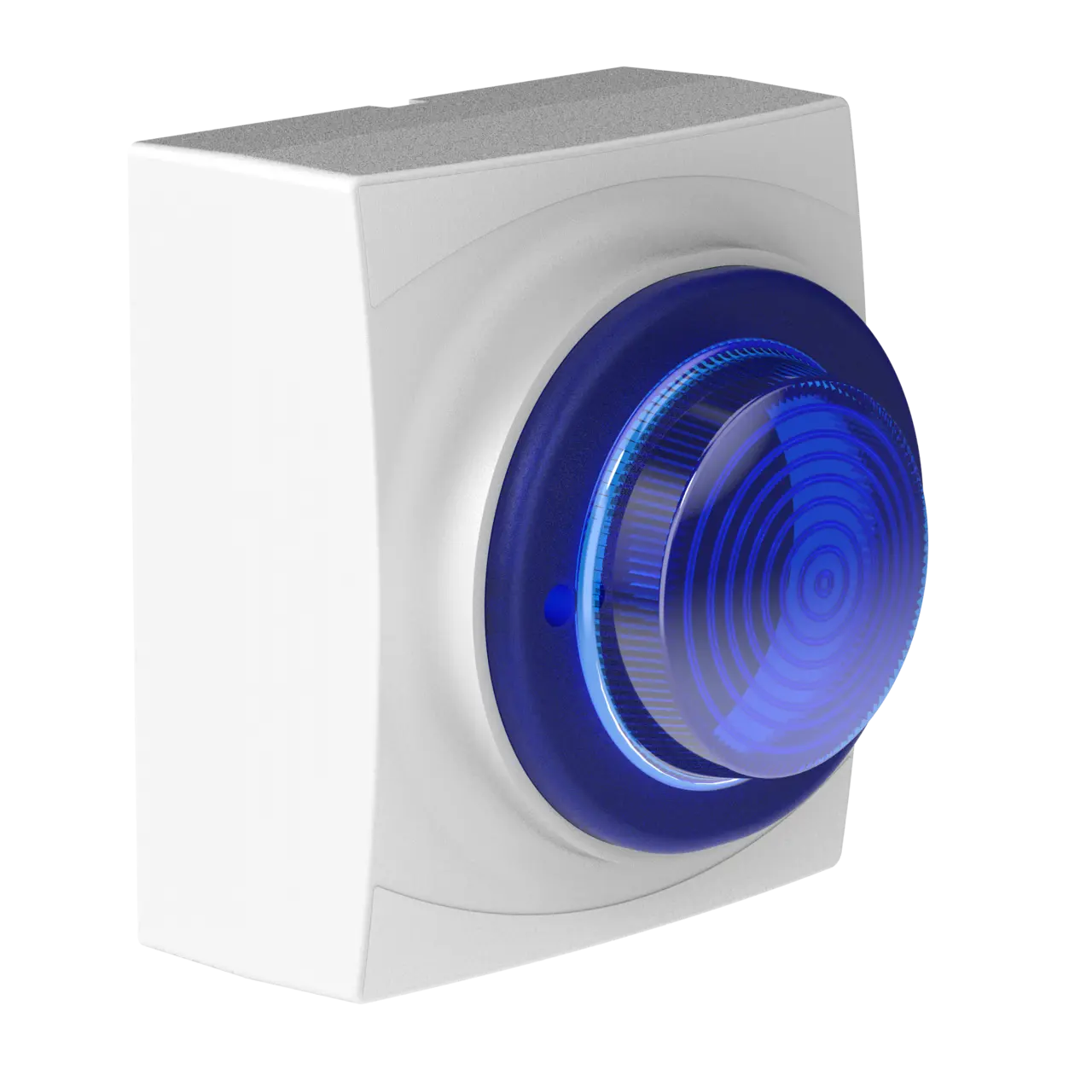 Detta är ett blixtljus med vit kapsling och blå lins som kommer med en låg ram som standard. Den kan fällas in i dosa eller monteras med IP67-klassad backbox som beställs som tillbehör. Med en relativt låg strömförbrukning och ett bredd spänningsintervall lämpar sig detta blixtljus till flertalet applikationer.