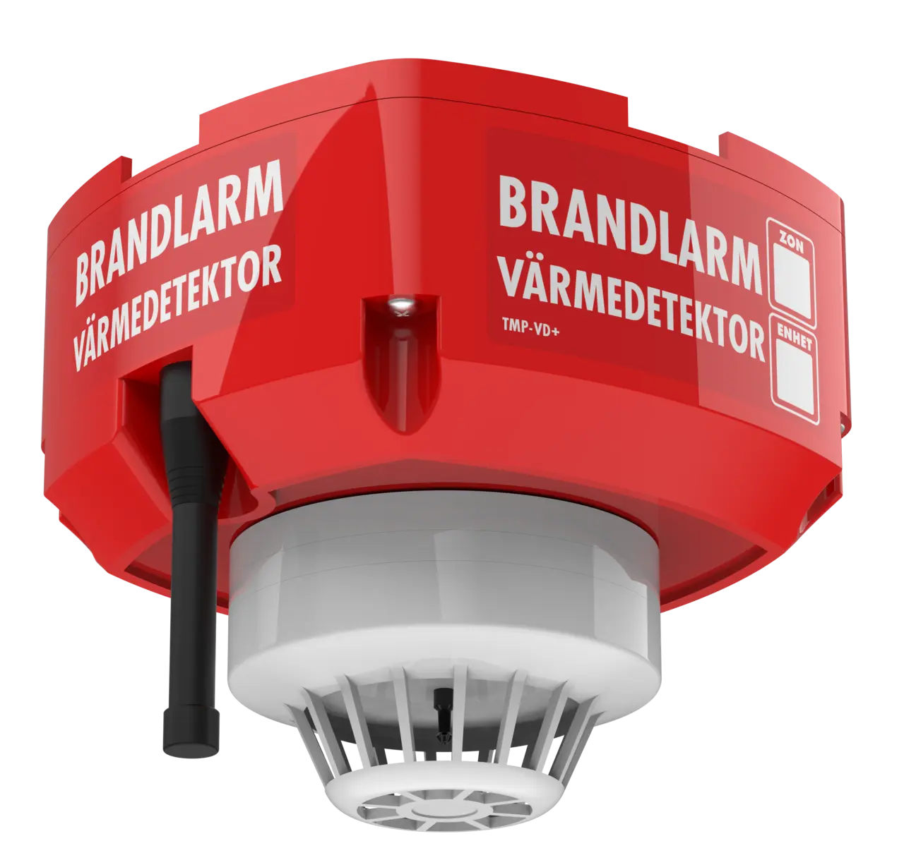 Värmedetektor till temporära bygglarmet TMP. Drivs på batteri. Bara att skruva upp där den behövs. Enkel att installera och synka ihop med basstationen. Räckvidd till 2 km meter vid fri sikt (OBS! enheten får bara användas inomhus). Varnar för lågt batteri och för täckningsproblem. Produkten är en uppdaterad variant av den populära TMP-serien men med fördelarna att den klarar upp till 250 enheter i ett system och 3 års batteritid samt ökad räckvidd.