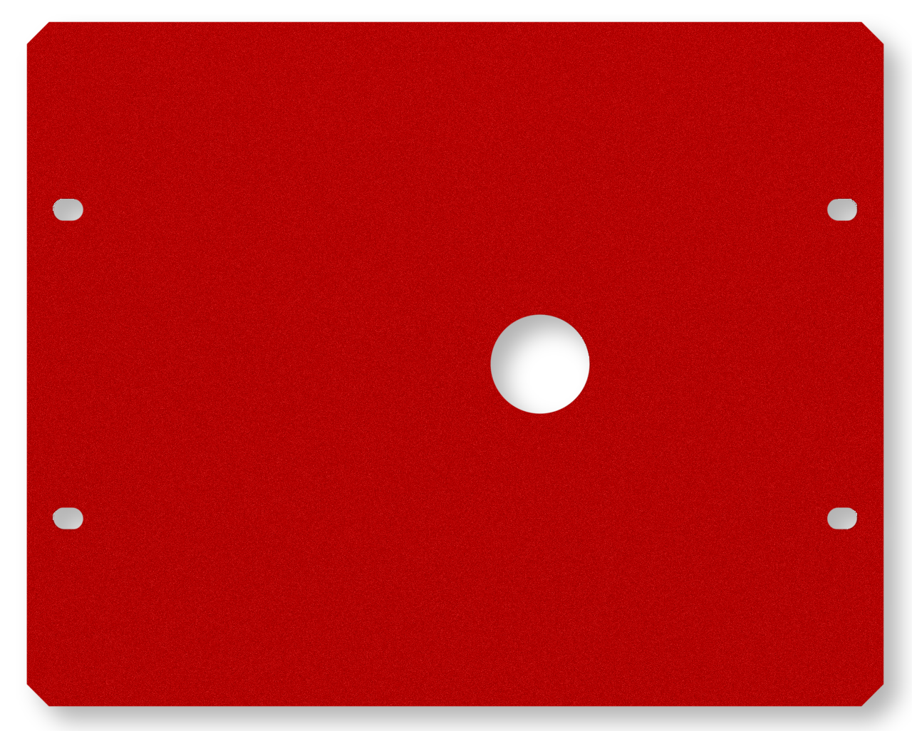 Montageplåt passande RLS100 skåpen. Ett 22,5 mm hål placerat i mitten av rutan.