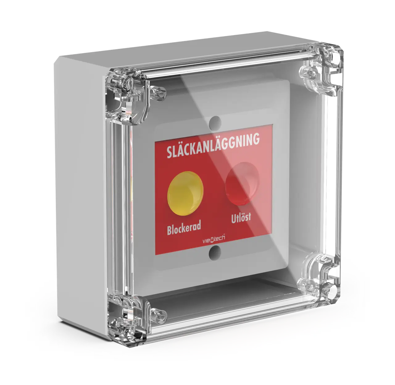 Indikeringslampa för utlöst släckanläggning, monterad i en IP65 kapsling.