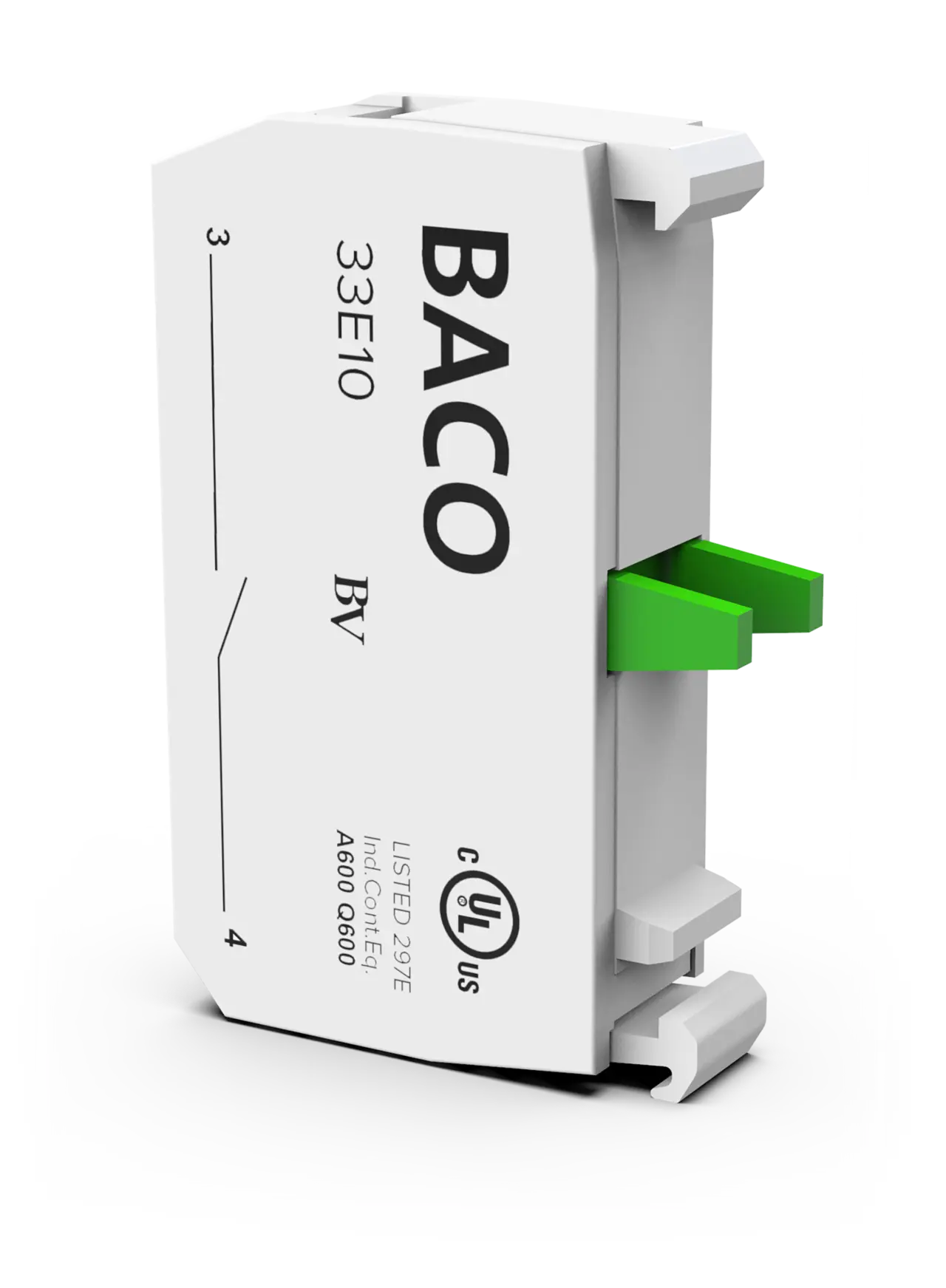 Kontaktblock med funktionen NO som passar vred och knappar från BACO med monteringsclips.