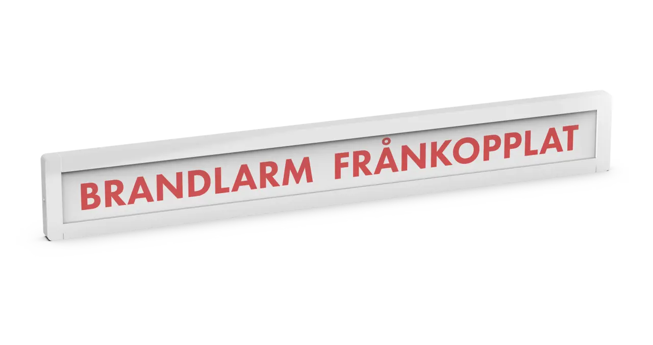 LED-armatur för brandlarm. Används för frånkoppling av brandlarm. 115 cm.(1150 x 160 x 30 mm). Spänning 230 V