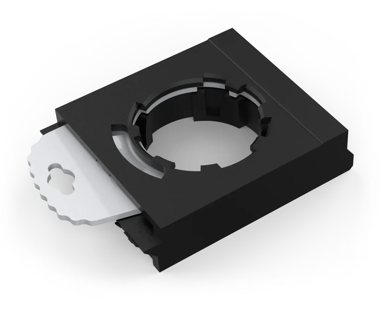 Monteringsclips som kopplar samman de olika kontaktblocken med manöverenhet (knapp eller vred) passar 3 moduler.