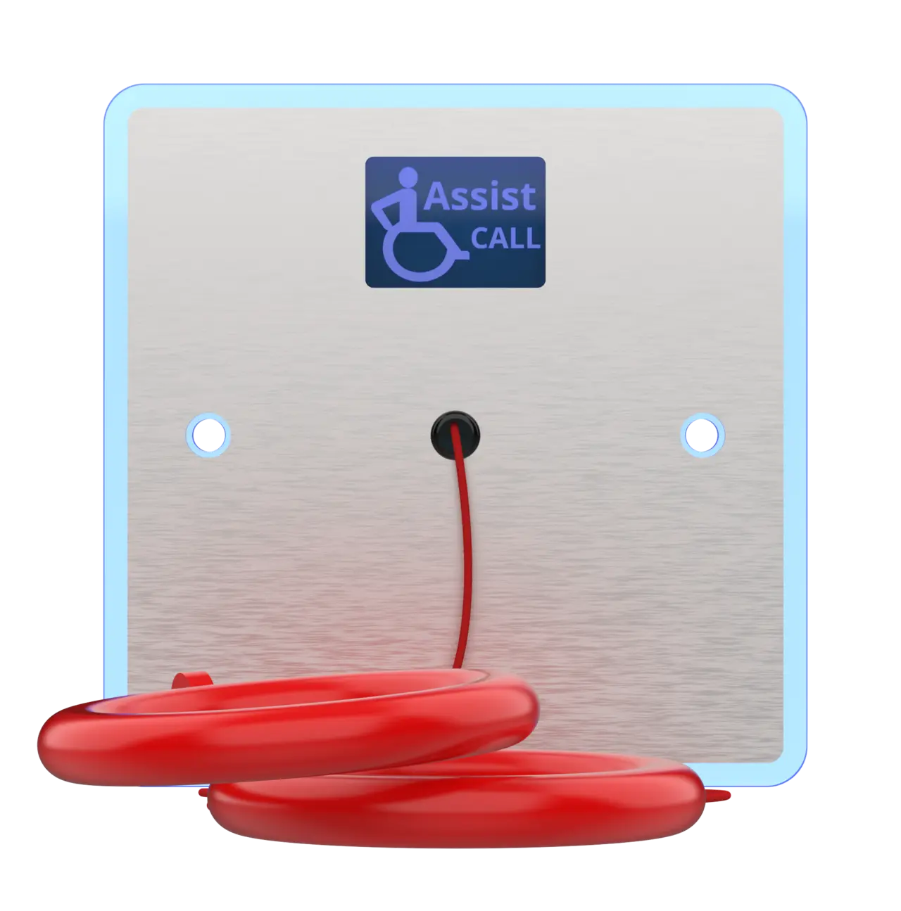 Crisis Assist Call Pull Cord-plattan används för att aktivera ett larm; dragplattan ska monteras med den lägsta ringdragningen 100 mm från golvet. Plattan är byggd i borstat rostfritt stål som standard med en blå "halo"-indikator för visuellt larm. För enkelhetens skull är alla ledningar en standard tvåkärnig kabel, upp till 6 dragsnören kan anslutas på en enda linje, ledningsordningen för plattorna är inte fast och kan därför kopplas i valfri ordning för att ge total flexibilitet i installationsvägarna. Varje platta har två uppsättningar av tvådelade plintar som möjliggör enkla kabelanslutningar och även en komplett first fix-lösning.