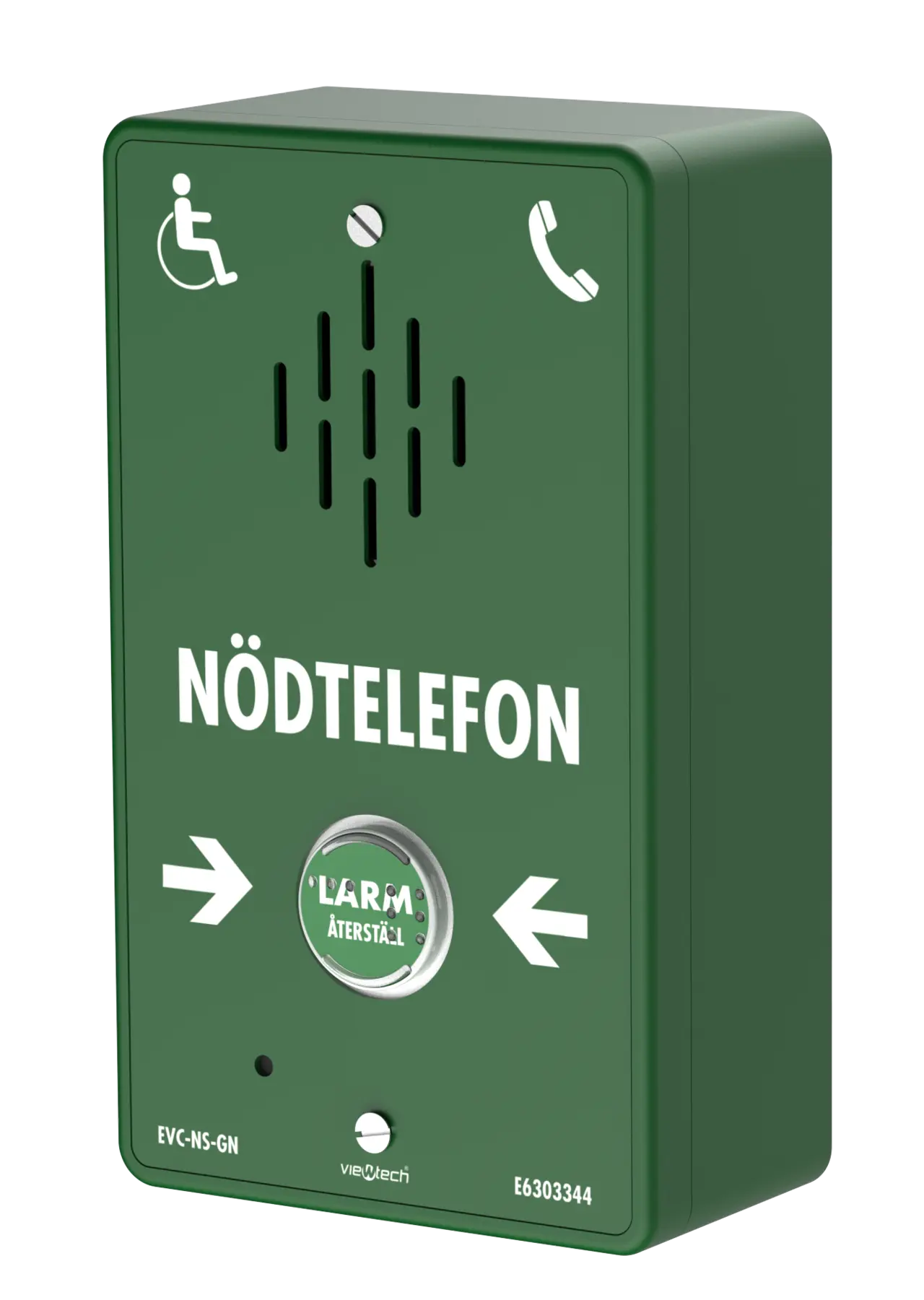 Ny modell av vår populära anropsapparat till nödtelefon för tvåvägskommunikation med tal för utrymningsplatser. Enheten är utformad i en snygg grön slagtålig plast med tydliga symboler samt blindskrift på larmknappen. Tryck på knappen och vänta på svar. Efter svar är hjälp på väg. Återställ samtalet genom att trycka på knappen igen. Maxlängd på kabel till nödtelefon är 500 meter.
