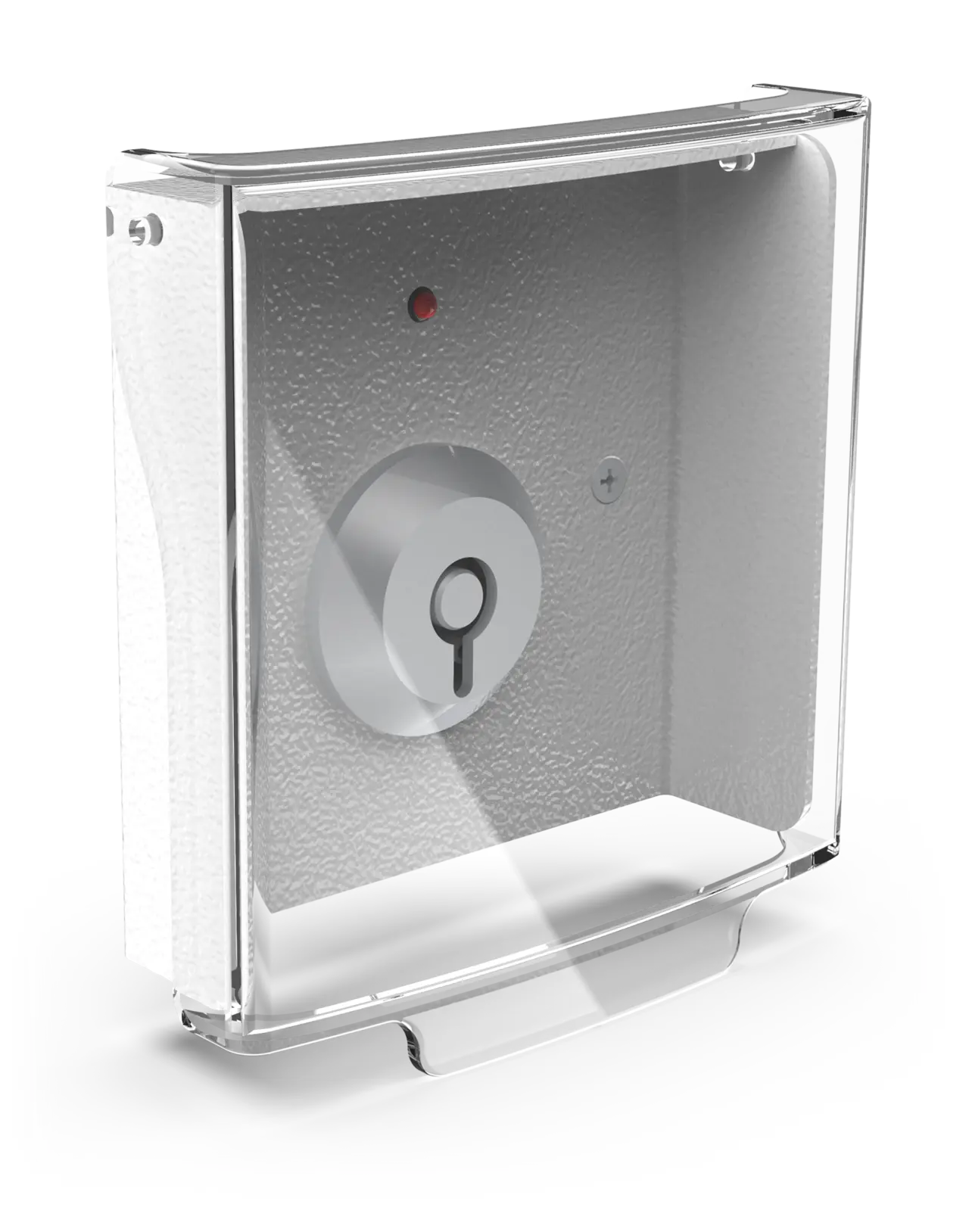 Nyckelbrytare NB-5 för infällnad i apparatdosa med brandkårslås passar alla typer av styrningar. T.ex. rökluckor, fläktar, olika starter, utrymningslarm med mera. NB-5 har en fri växlande kontakt (NO/NC) och en röd lysdiod färdigkopplade till plint. Mikrobrytaren (24VDC/2A) och lysdioden matas med 24VDC. Skyddslock ingår.