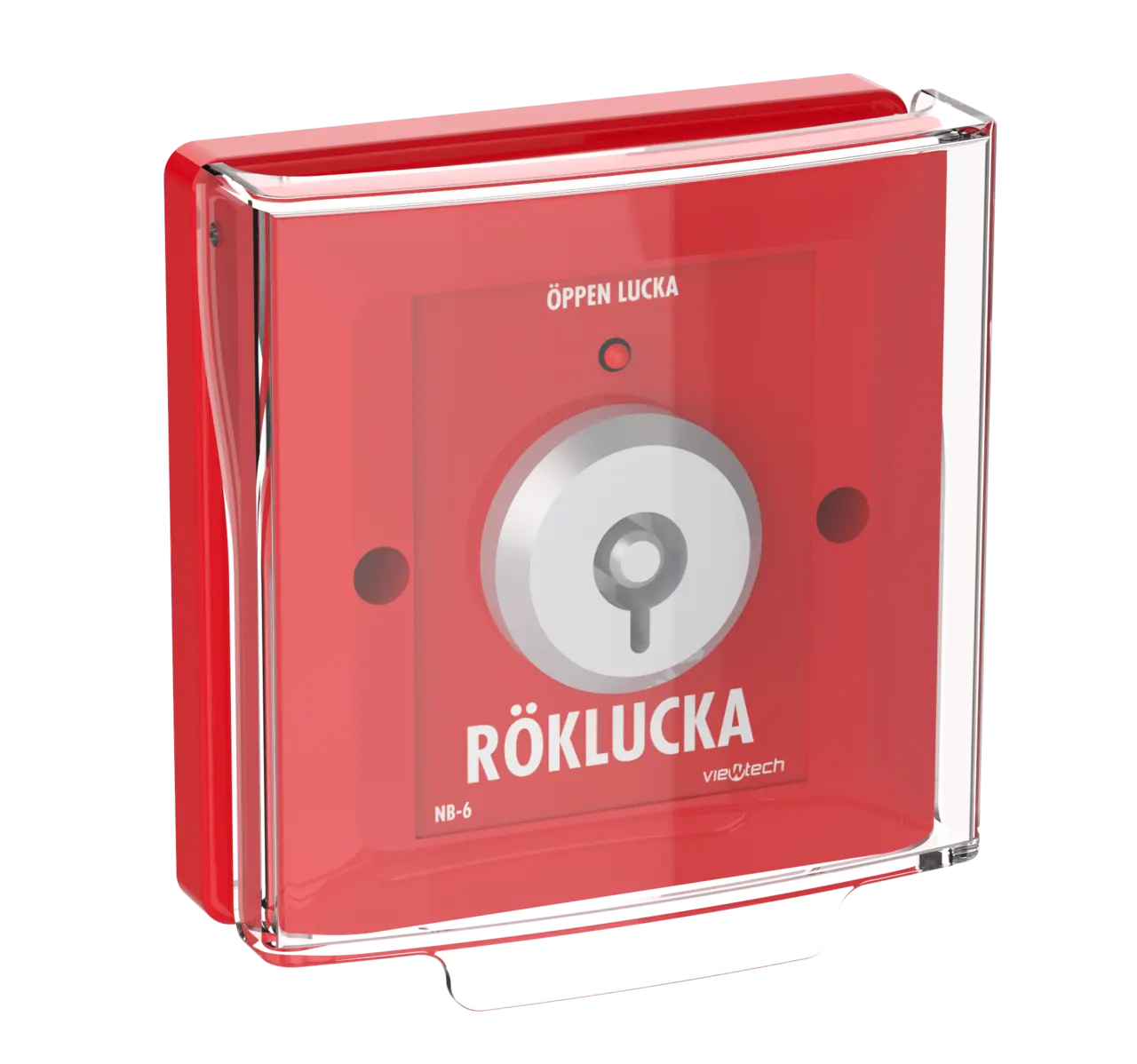 Nyckelbrytare NB-6-RD-REL med brandkårslås passar styrningar av rökluckor. NB-6-REL har en fri växlande kontakt (NO/NC) och en lysdiod färdigkopplade till plint. Mikrobrytaren (24VDC/2A) och lysdioden matas med 24VDC. Vid inkopplad lysdiod drar även ett relä med två fria växlingar. Används för styrning exempelvis till DUC. Reläet är färdigkopplat till plint. Låset är monterat i en plastkapsling 95x95x40 mm och skyddas av ett transparent lyftbart lock. Plats för kabelgenomföring finns i botten och i övre delen. Färg Röd