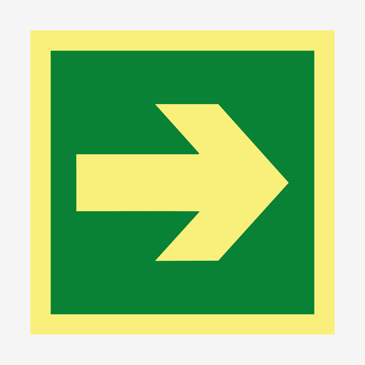 Riktningspil för utrymning rak och efterlysande. Finns i aluminium och Plast