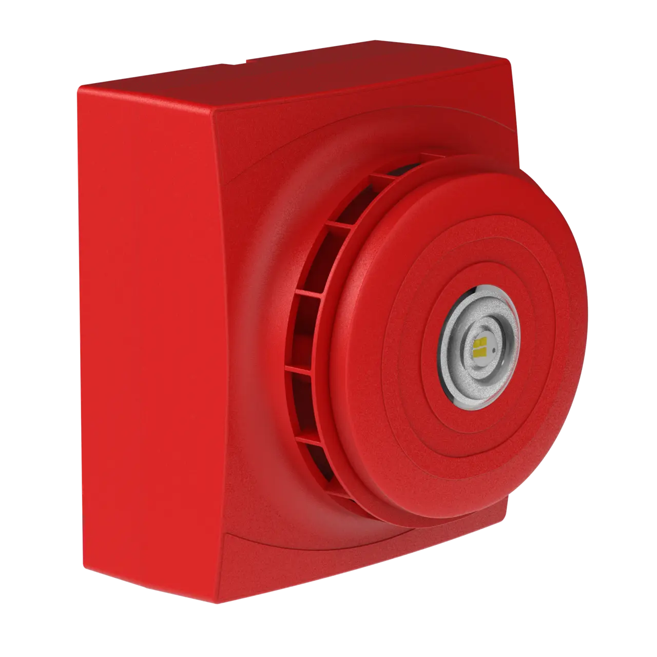 Detta är ett blixtljus med röd kapsling och vit lins som uppfyller EN54-3 & EN54-23 i C-Klass avsedd för takmontage som kommer med en låg ram som standard. Sirenen har 32 valbara toner. Den kan fällas in i dosa eller monteras med IP67-klassad backbox som beställs som tillbehör. Med en relativt låg strömförbrukning och ett bredd spänningsintervall lämpar sig detta blixtljus till flertalet applikationer.