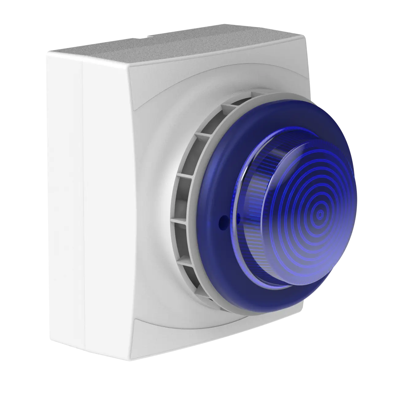 Detta är ett kombinerat blixtljus / siren med vit kapsling och blå lins samt 32 valbara toner och levereras med en låg ram som standard. Den kan fällas in i dosa eller monteras med IP67-klassad backbox som beställs som tillbehör. Med en relativt låg strömförbrukning och ett brett spänningsintervall lämpar sig detta blixtljus till flertalet applikationer.