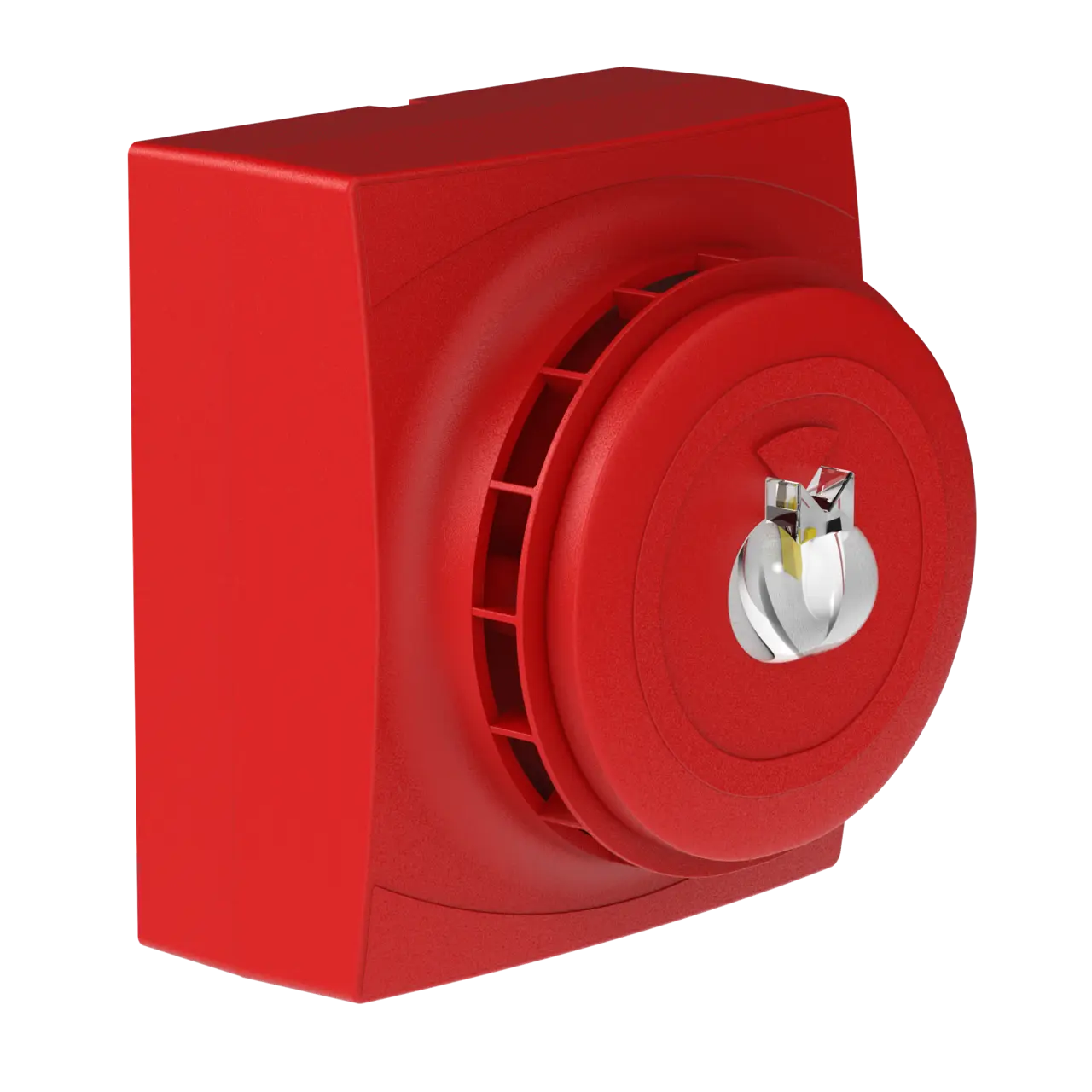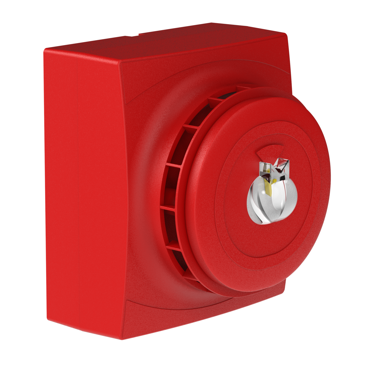 Detta är ett blixtljus med röd kapsling och vit lins som uppfyller EN54-3 & EN54-23 i W-Klass avsedd för väggmontage som kommer med en låg ram som standard. Sirenen har 32 valbara toner. Den kan fällas in i dosa eller monteras med IP67-klassad backbox som beställs som tillbehör. Med en relativt låg strömförbrukning och ett bredd spänningsintervall lämpar sig detta blixtljus till flertalet applikationer.