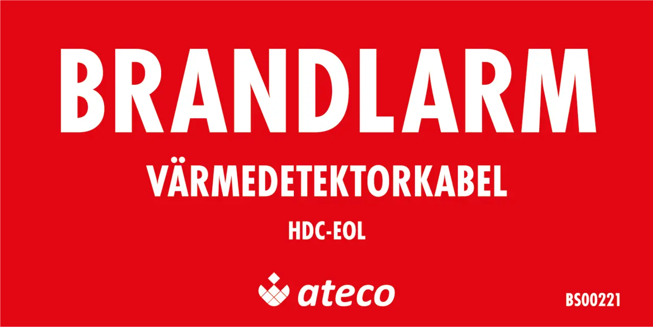 Skylt - Brandlarm Värmedetektorkabel. till HDC-EOL 120x60mm